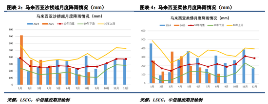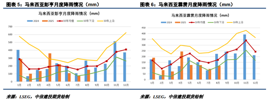 不过,即便马棕10月产量增长有自身的积极因素,其较好的产量表现也恐难有太好延续性。劳动力对产量的约束更多集中在产量高峰期,随着季节性减产即将开启,产量潜力下滑将令劳动力恢复的影响被弱化。此外,今年4月以来沙巴及沙捞越油棕产区的降雨明显转差,5-8月甚至出现干旱的情况;马来半岛油棕主产区1季度的整体降雨本就不算太好,在4月降雨短暂增多后,5-8月的降雨也出现了偏少的情况。前期降雨对年底至明年1季度的马棕产量并不算有利,为此我们很难因单月产量表现超预期就线性外推后续月份产量也将超预期。