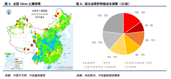 自中国对加菜籽进口加征临时性保证金以来,中国菜籽进口数量边际放缓,国产菜籽迎来发展机遇。随着时间进入10月,湖北等国产菜籽产区陆续进入播种阶段。然而,10月15日-21日期间,中国多地阴雨连绵,湖北丹江口水位随之上涨。渍涝风险背景下,湖北油菜籽播种面临挑战。10月21日-24日期间,我们走访湖北“汉川-仙桃-洪湖-监利-江陵-松滋-沙洋-钟祥”等江汉平原菜籽产区,总结成果如下。