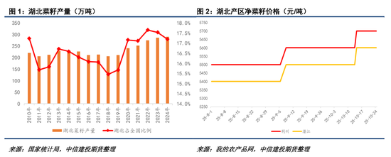 总的来说,目前湖北菜籽市场旧作偏紧、情绪偏强。新季播种方面,由于10月期间阴雨连绵、湖北总耕地面积临近上限、小麦种植收益尚可等原因,本年度湖北菜籽种植面积预计略减,具体需要看11月5日之前尚未完成播种的产区能否补种,但进一步扩张的概率不高。另外,随着新兴品种的推广,预计新季菜籽含油率普遍抬升,市场关注重心可能进一步向芥酸、油色等指标倾斜。